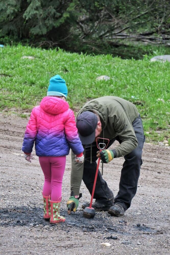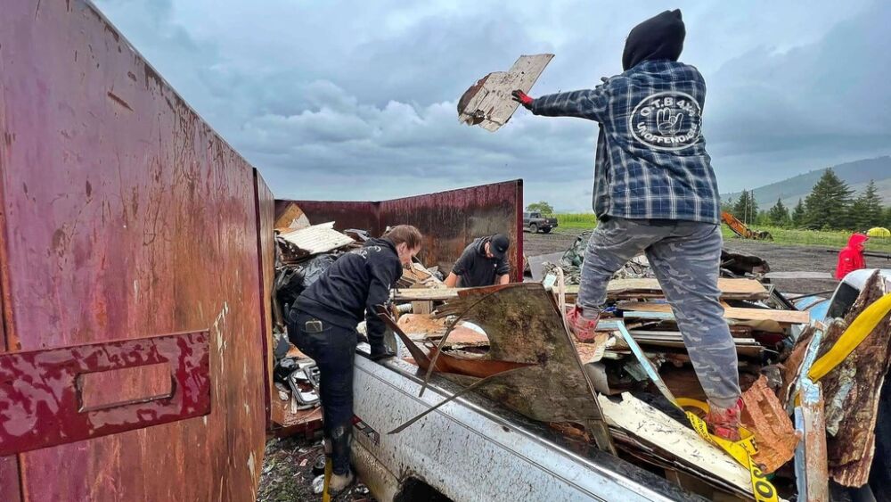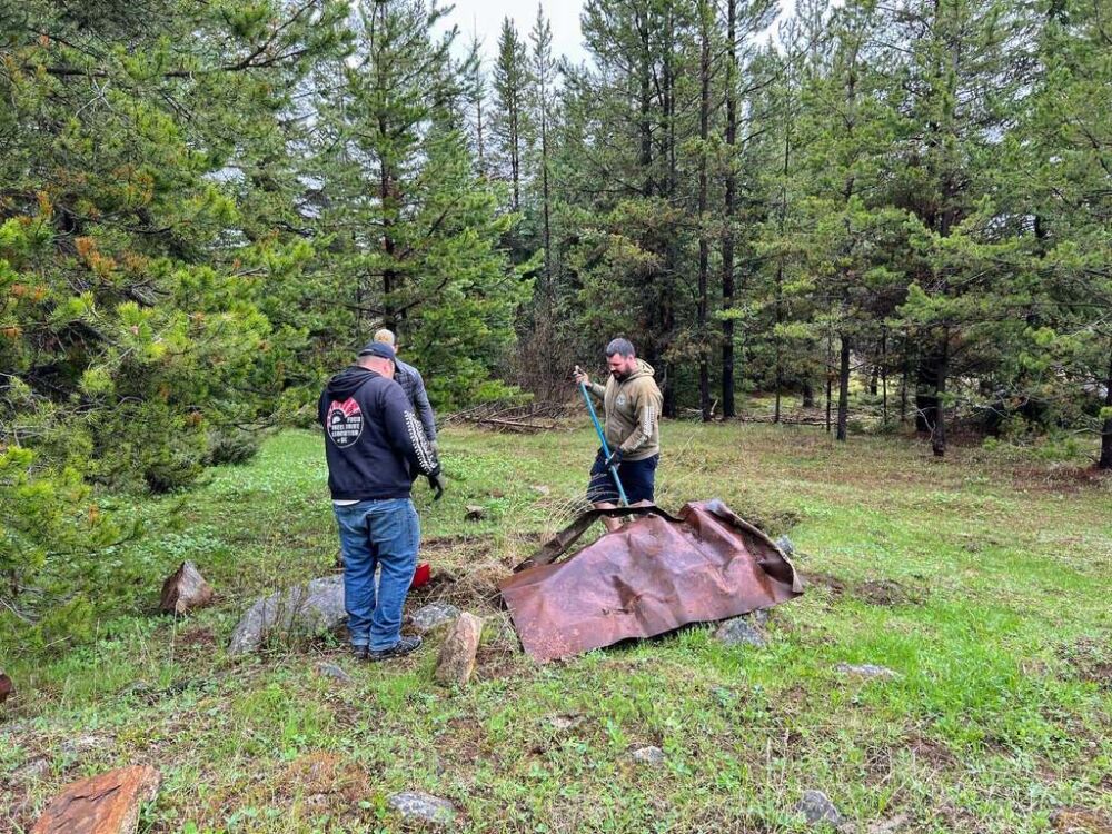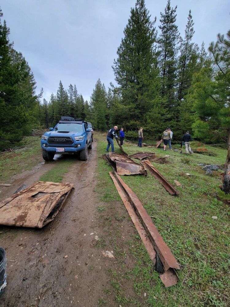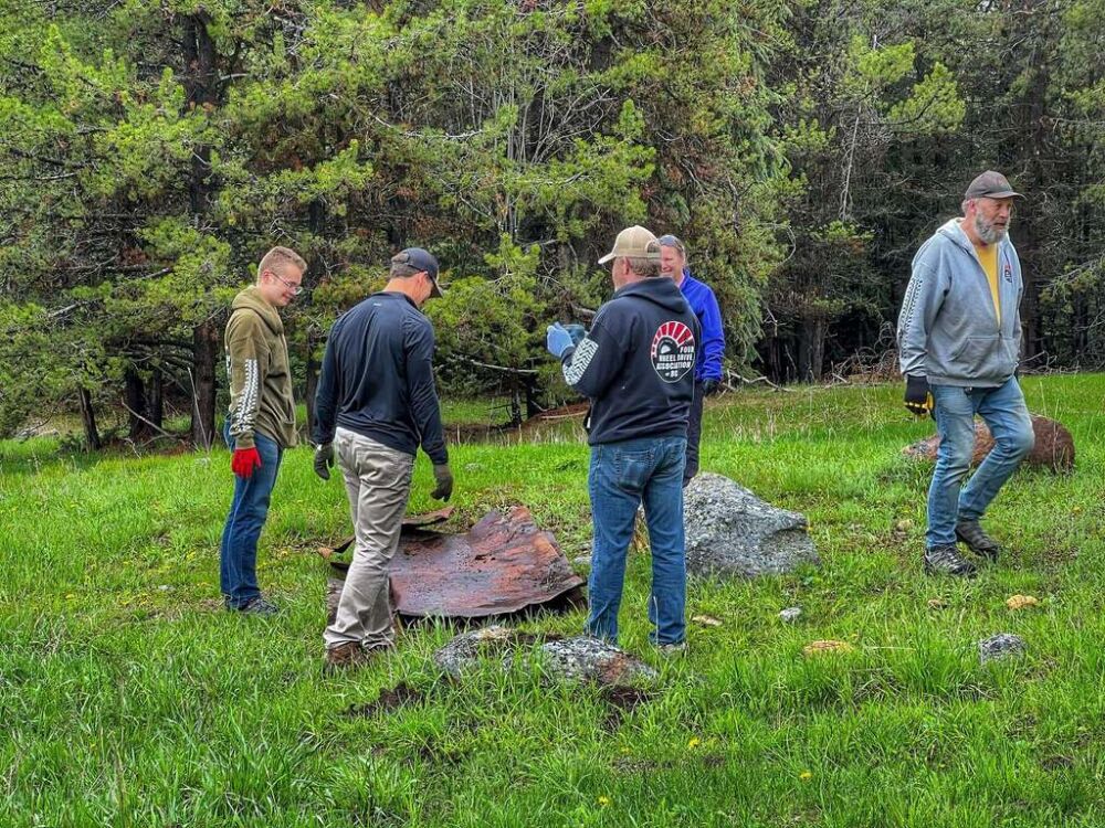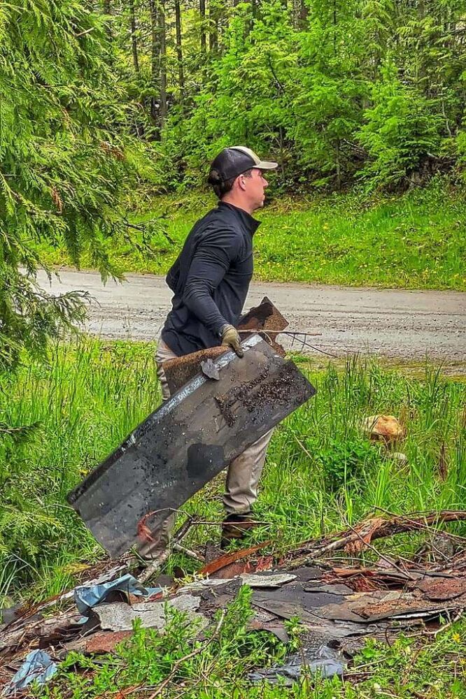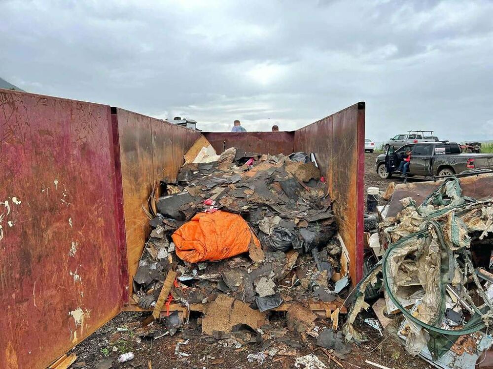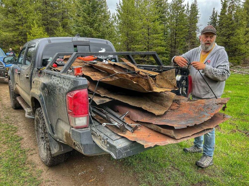 As folks arrived Saturday morning the crowd grew under the assembled tents as rain threatened. After a safety meeting groups were giving their pre-scouted dump site assignments so fanned out across the King Eddy/Aberdeen Plateau to retrieve all manner of trash ranging including household waste, appliances, paint, tires, mattresses, pallets, steel, wrecked cars, pallet fire nail caches and so much more.