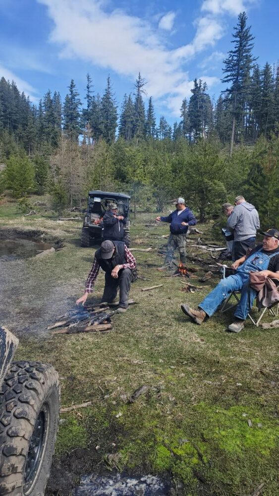 The day before Mother’s Day, Michael is leading this trail work ride to clear the Lobster/Tunnel Trail that connects CJ Express to Oyama Lake FSR near Damer Lake. This trail is an important connector that enables a loop ride rather than having to ride King Eddy FSR back down again.