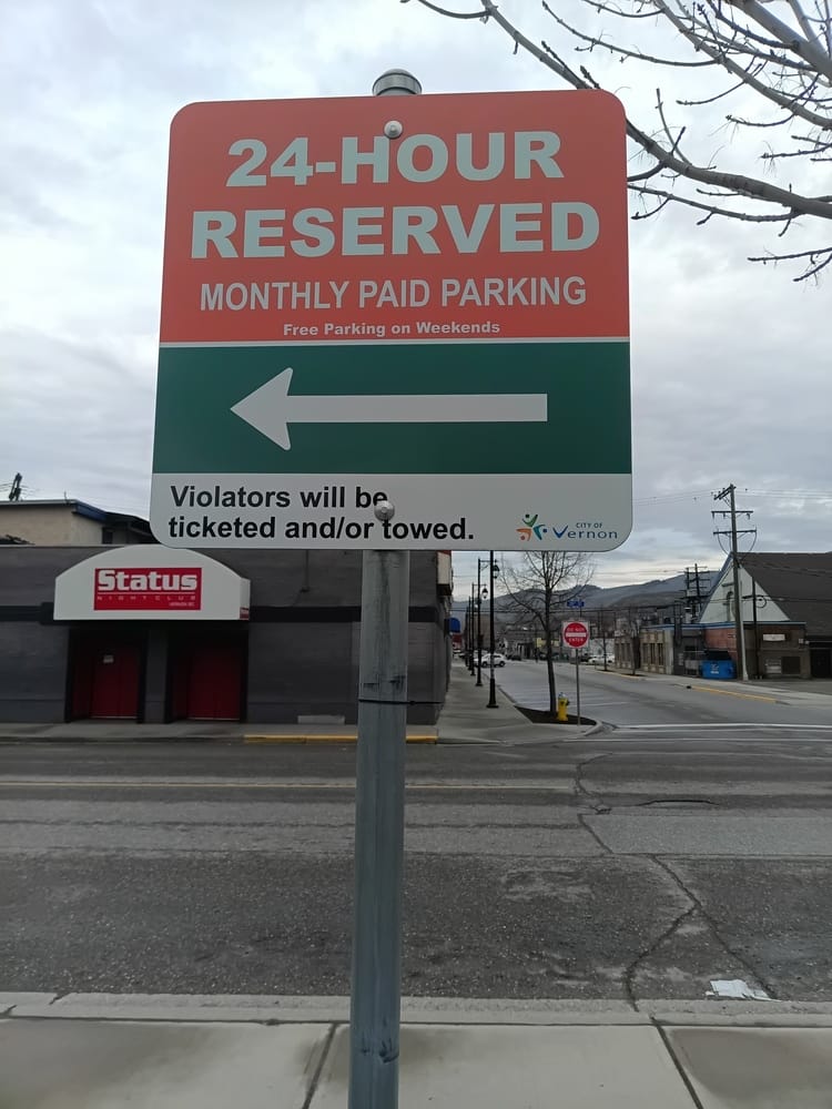 Congrats to the City of Vernon for the crappiest “Free Parking on Weekends” signage at their lot on 29th St. This tiny text isn’t visible unless you’re in a parking spot (this photo is taken standing one step back from the sign) and these signs are all placed around the outside of the lot so the tiny text isn’t visible while driving.